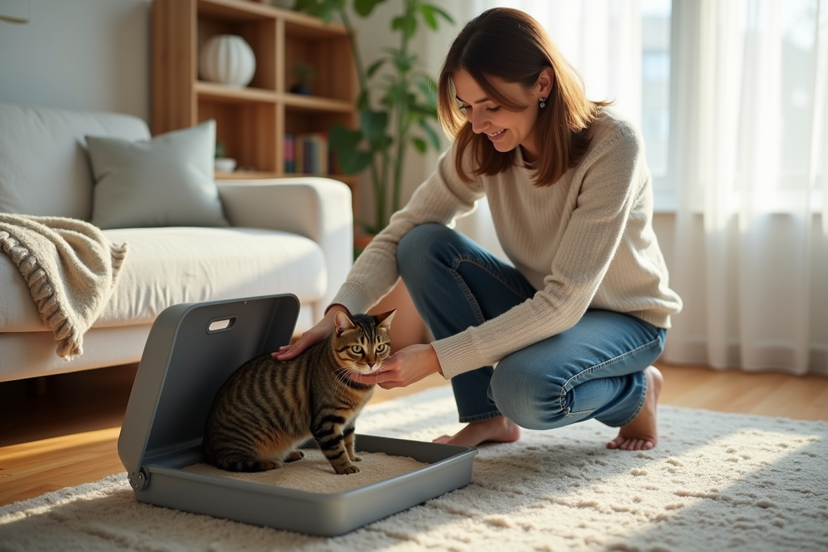 • Essayez différents bacs litière : couvercle ou non, taille, emplacement… l’agencement fait la différence.