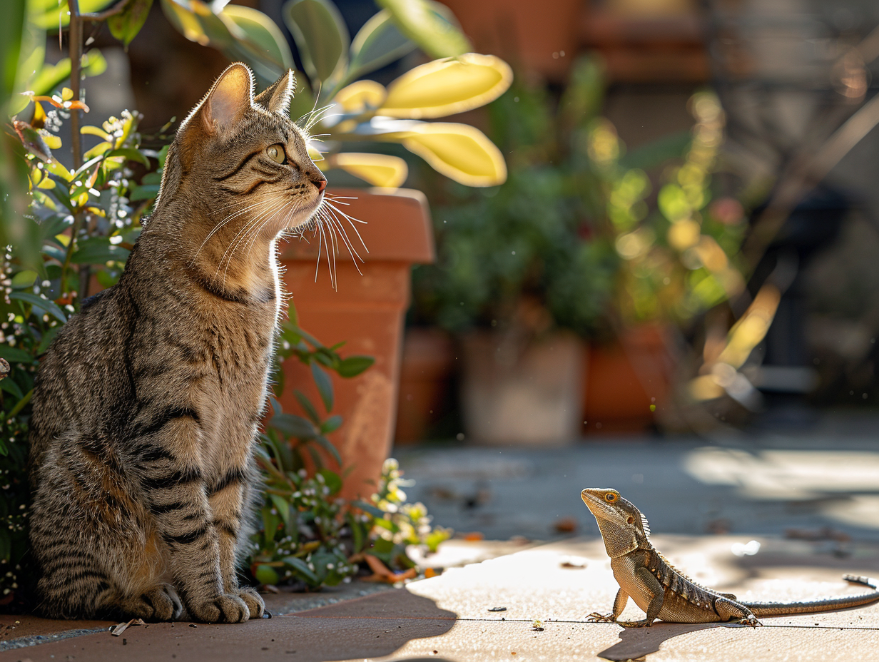 La chasse aux lézards par les chats domestiques est aussi motivée par le besoin d’éviter l’ennui et de stimuler leur agilité ainsi que leur acuité mentale. Les lézards, capables d’autotomie soit la faculté de perdre volontairement une partie de leur queue pour échapper aux prédateurs, offrent aux chats un défi particulier, rendant la chasse d’autant plus captivante. Ce comportement peut s’avérer être un exutoire pour les chats, qui autrement, pourraient s’adonner à des activités destructrices ou développer des troubles du comportement liés à l’inactivité. Les propriétaires de chats doivent rester vigilants. Bien que la chasse soit une activité naturelle, elle n’est pas sans risques pour la santé de leur animal. Les chats peuvent être exposés à des parasites et des maladies en capturant et en consommant des lézards. La surveillance des activités extérieures du chat et la mise en place de mesures préventives deviennent alors indispensables pour assurer le bien-être des félins aventuriers.